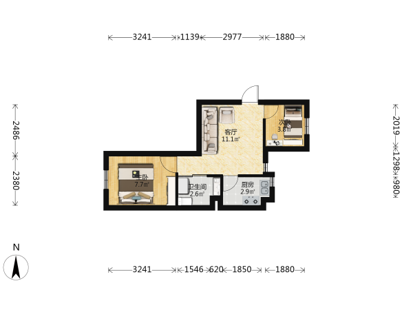 房屋戶型: 2 室1廳 1 廚1衛(wèi)